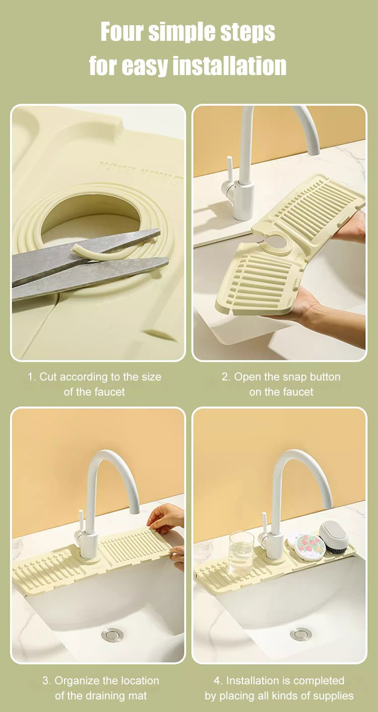 [Przeciw pleśni] Silikonowa podkładka kranu do zapobiegania rozpryskom i odprowadzania wody