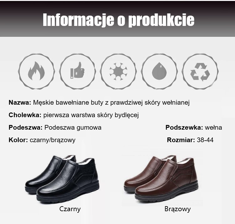 Męskie bawełniane buty z prawdziwej skóry wełnianej